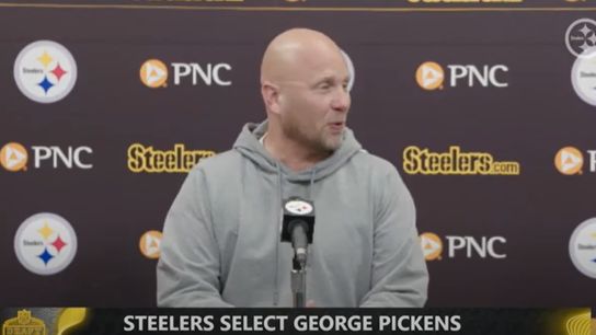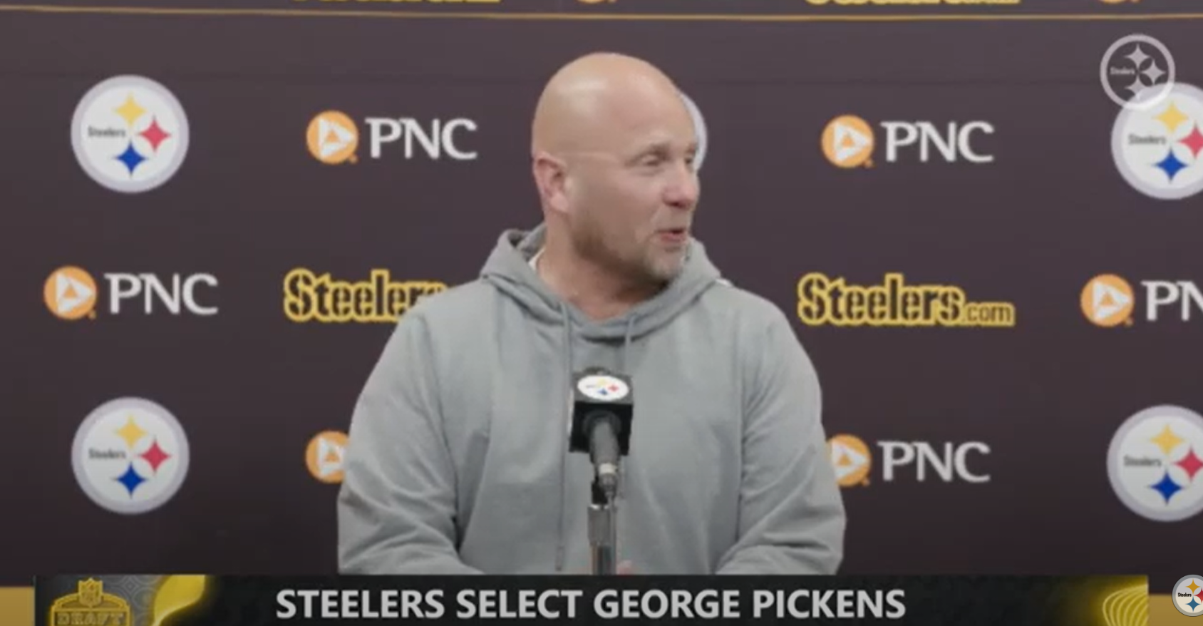Matt Canada at press conference after selection of WR George Pickens. Credit: Steelers