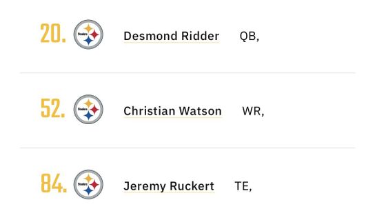Mike wrote: "The Steelers haven’t been shy about their interest in drafting a quarterback going 4 for 4 last week attending the Cincinnati, Liberty, Ole Miss, and Pittsburgh Pro Days. With Malik Willis off the board, the Steelers decide to take their (next) guy and select Desmond Ridder over the likes of Kenny Pickett, Matt Corral, and Sam Howell. While I have no inside information to this decision, something tells me Ridder is the next quarterback they want after Willis. Ridder is a proven winner going 44-7 during his 4-year career at the University of Cincinnati, going 26-0 never losing a home game. Showcasing his 4.52 speed at the combine, Ridder has remarkable mobility, a trait Head Coach Mike Tomlin discussed ad nauseum during the season. While mechanics can be an issue at times, the Steelers have no problem letting Ridder sit back and develop while Mitch Trubisky steps in under center in the interim. Christian Watson and Jeremy Ruckert go in back to back rounds to add more fire power to a rather stale Steelers offense. While Watson doesn’t have the pedigree of going against the big power 5 schools while at North Dakota State, a 6’4” frame and running a 4.36 40 is hard to bypass. Ruckert will be able to battle Zach Gentry for the second tight end role and has a proven track record as an excellent blocker while at Ohio State, something that could help take the hits off Pat Freiermuth. Ruckert also is a very capable pass catcher, although his opportunities were limited in college.