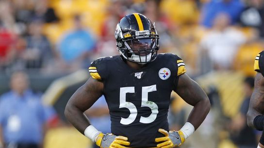 Pittsburgh Steelers linebacker Devin Bush (55) lines up during the first half of an NFL football game against the Tampa Bay Buccaneers in Pittsburgh, Friday, Aug. 9, 2019. (AP Photo/Keith Srakocic)