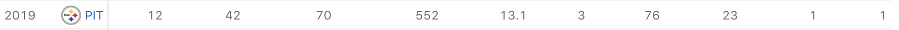 This, of course, is only taking into account his on-field production (or lack thereof). There are plenty of people who also consider Smith-Schuster's social media presence a deterrent for what they perceive as his inability to make crucial catches at critical points. However you feel about the way he conducts himself online is your prerogative. But I, personally, stick to football metrics to judge football play.