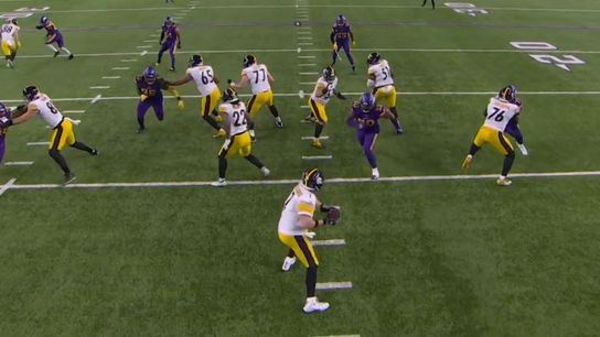 The Vikings registered 5 sacks and the offensive line couldn't generate any holes for Harris in the first half. But it wasn't limited to missed assignments as the line was responsible for multiple penalties as they couldn't get aligned quickly enough, resulting in delay of game and false start penalties. Kendrick Green was notably errant with multiple shotgun snaps that Roethlisberger should get notable credit for not allowing any to result in turnovers, though one came very close.